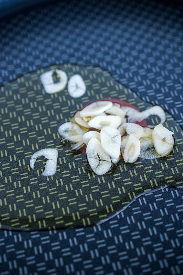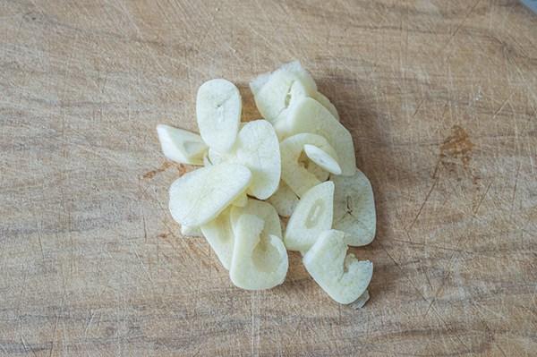 Lo primero de todo es pelar y picar el ajo en finas laminas.