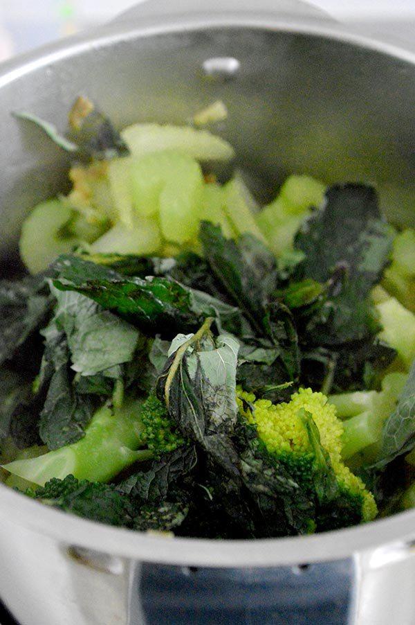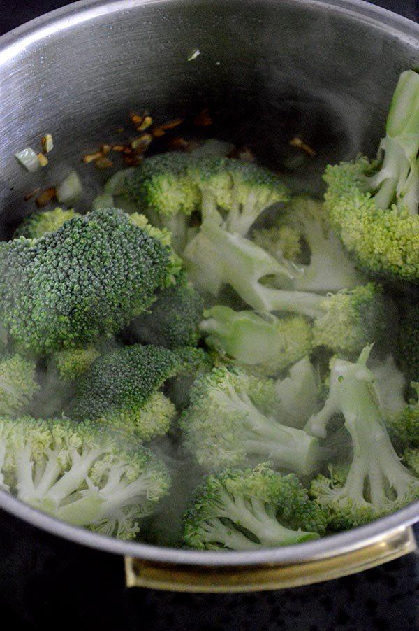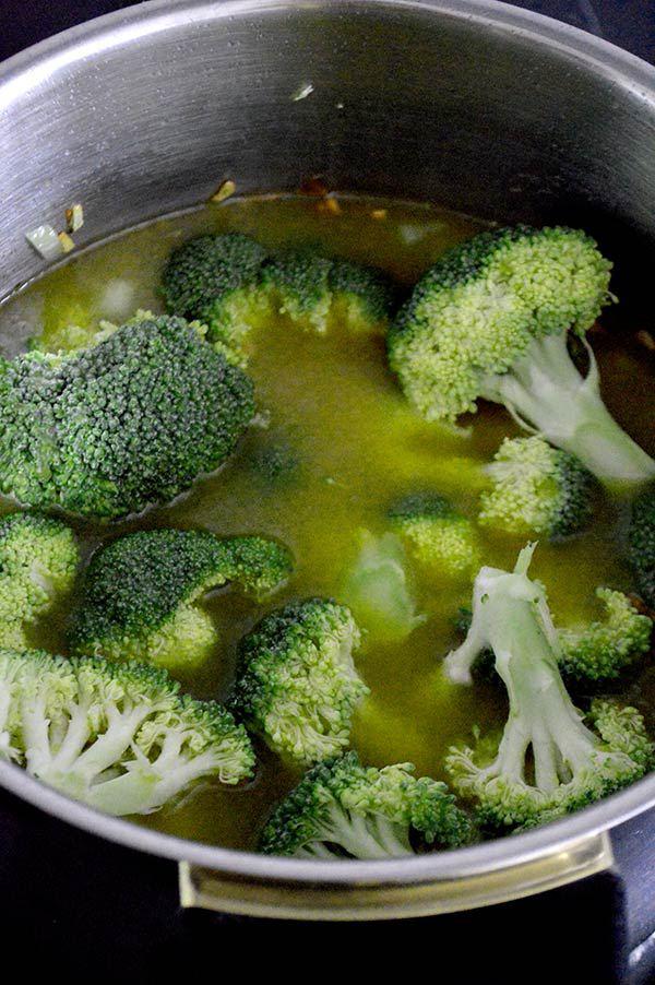 Cortamos el brócoli y lo añadimos al sofrito y añadimos el caldo de verduras.
