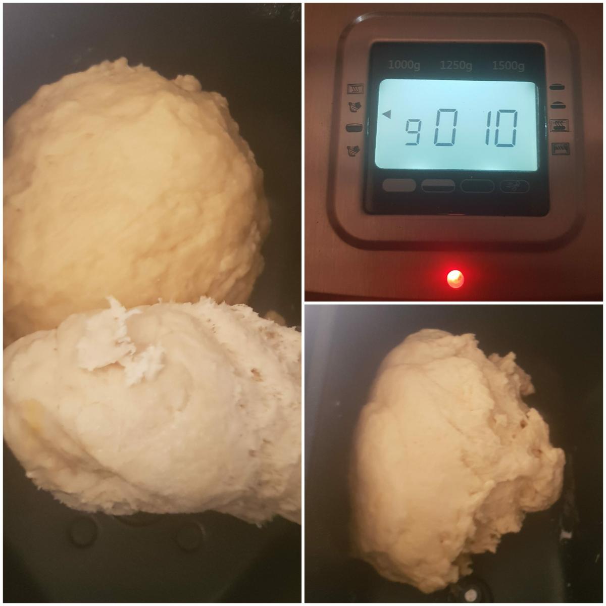 Segundo amasado Una vez amasado los primeros 10 minutos, le añadimos la bola de fermento que ha tenido que duplicar su volumen, y amasamos otra vez hasta que se integre todo, yo en mi caso otros 10 minutos en el programa 9.