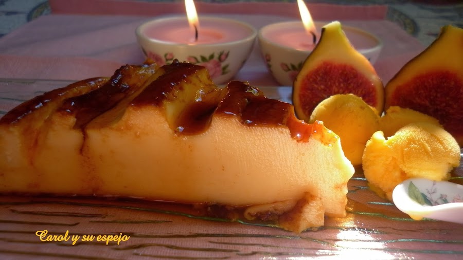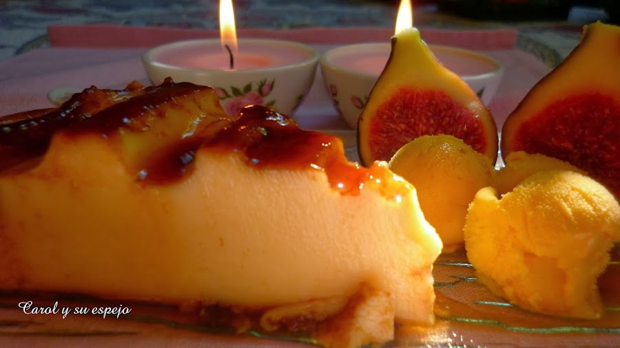 Parece un platillo volante que en cualquier momento va a echar a volar!!!!! jajajajaja, pero no, os aseguro que es un flan de yogur y está rico no, riquísimo. Lo vi en una revista y me gustó así que me puse manos a la obra. Lo acompañe con higos y helado de mango y la verdad es que la mezcla de sabores resultaba muy buena.