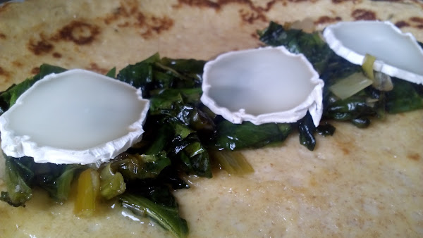 Iremos haciendo uno a uno los crepes y reservaremos en un plato. Luego los rellenaremos con las espinacas y el queso como podemos ver en la fotografía superior, enrrollaremos y serviremos.