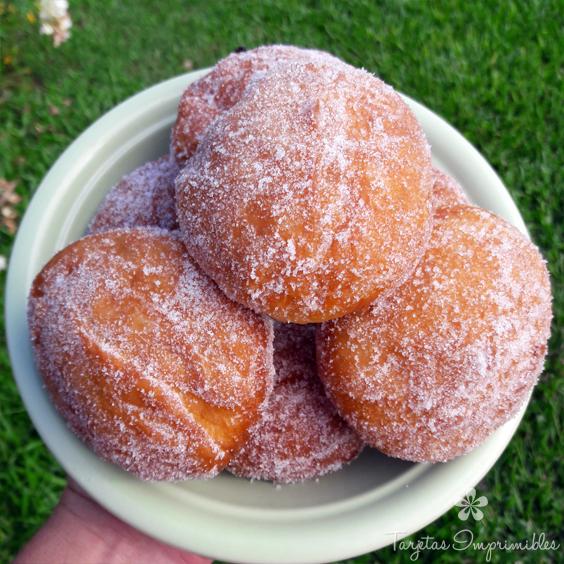 Cocinar en aceite caliente de ambos lados durante unos minutos. Escurrir en papel absorbente e inmediatamente rebozar con azúcar.