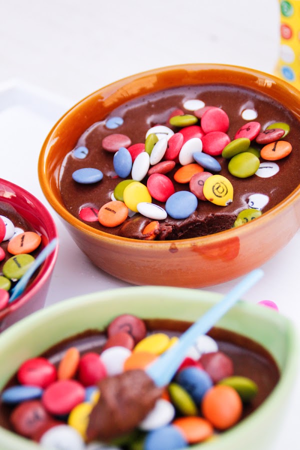 OPCIONAL: yo los he decorado con lacasitos para que quede más colorido, pero no es necesario. Podéis dejarlo así sin más o podéis echarle nata montada (crema de leche) por encima, M&Ms, crocanti… Lo que os apetezca.