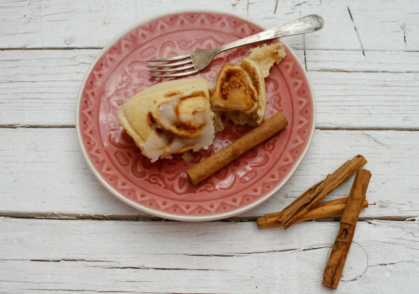 El glaseado se hace con 3 cucharadas de leche y 100 gr de azúcar glasé a fuego muy bajo para que no se queme y se quede blanco. Lo pones por encima una vez hayas sacado los rollos de canela del horno.Bon apetit!