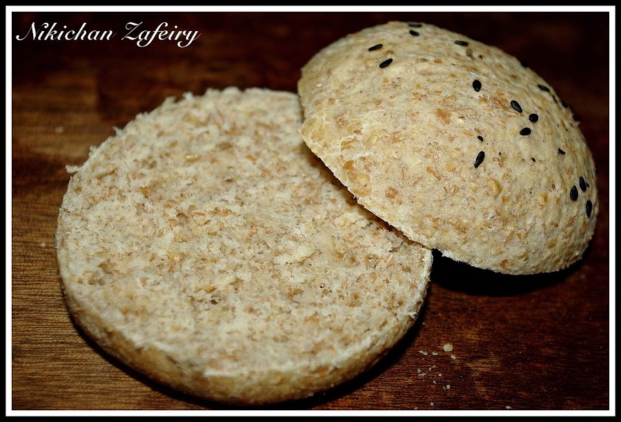 Hoy toca encender el horno y preparar un poquito de pan. ¿Os apetece? Tenía ganas de hacer unos panecillos para la cena y se me ocurrió hacer un pan tipo burguer pero integral... No decepcionó. La corteza finita y bien formada, sin roturas exteriores a pesar de no llevar cortes. Y la miga blandita y muy sabrosa, con ese toque característico de los panes integrales.