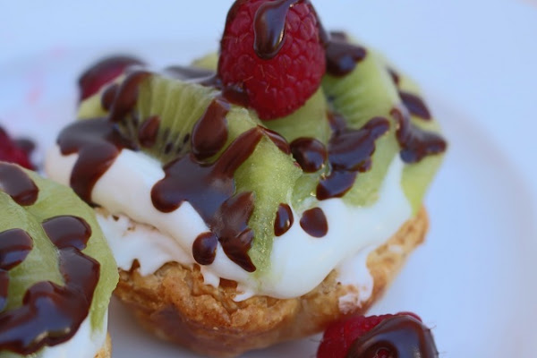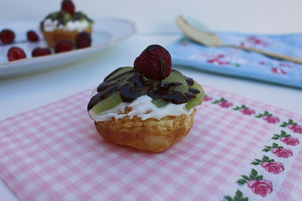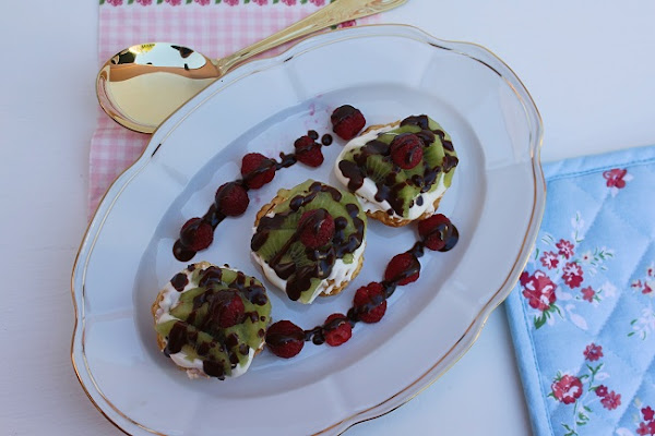 TARTALETAS DE KIWI, CREMA DE QUESO Y CHOCOLATE NEGRO FUNDIDO