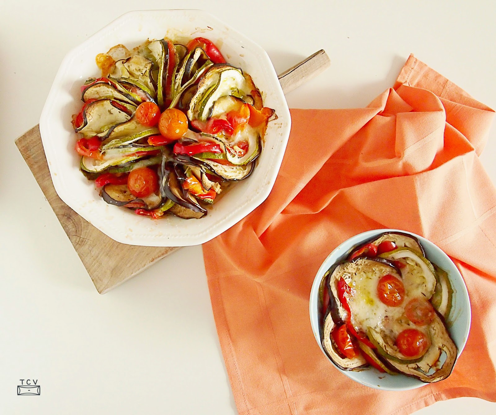 Pon a calentar el horno a 180º calor arriba y abajo y mientras vas intercalando tus verduras y el queso, no hace falta que el plato te quede en plan vistoso, igual te resulta más sencillo colocarlas en plan lasagna hasta que hayas rellenado toda la fuente.