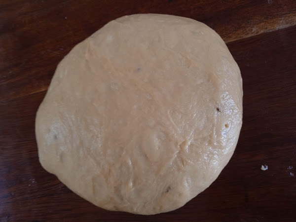 6.-Regresa la masa a la mesa de trabajo, amasa ligeramente para eliminar el aire que se formó.