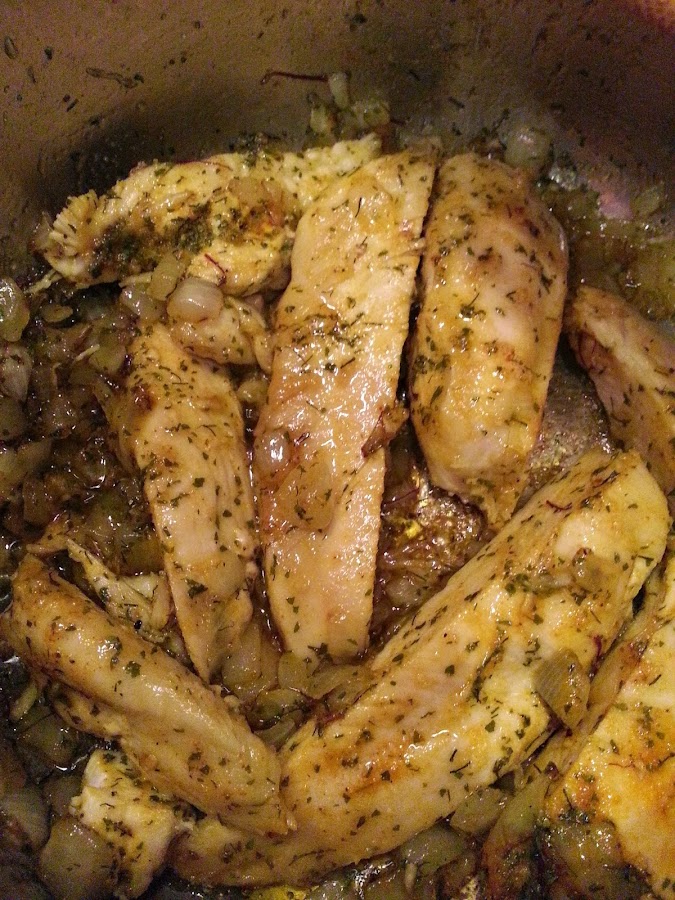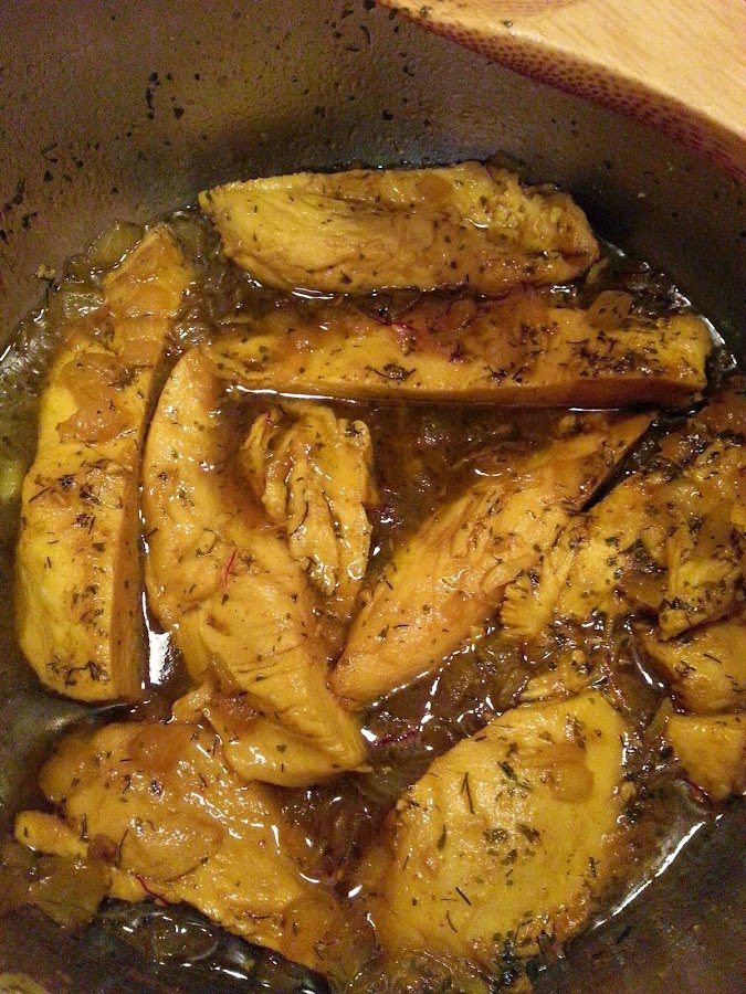 Probé esta receta en un restaurante magnífico que hay donde vivo actualmente y busqué la receta un día que tenia unas pechugas de pollo que no sabía como cocinar. Viendo varias recetas y como no sabía muy bien como hacerla, yo la he hecho a mi estilo. No le he puesto huevos como en la receta original ni almendras y he simplificado un poco el proceso de elaboración.