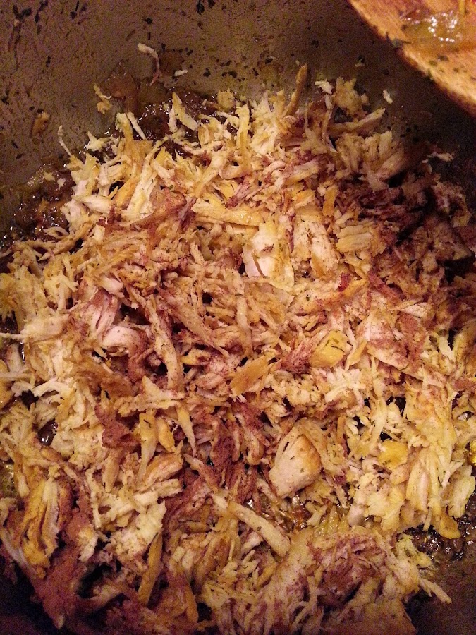 - Desmenuzamos una vez enfriado y volvemos a poner al fuego con la canela.