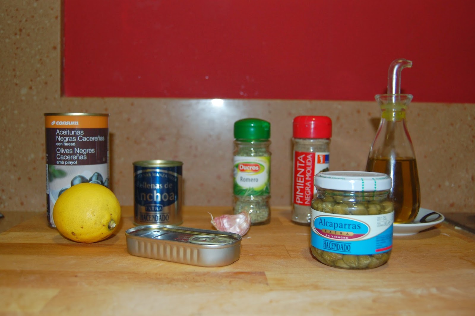 Podemos poner patatas troceadas también, con el aceite y el vino quedarán muy ricas. Esta vez quise probar de poner también olivas verdes en el tapenade, la mezcla no estuvo nada mal, aunque está mas bueno sólo poniendo oliva negra. Espero que os guste.