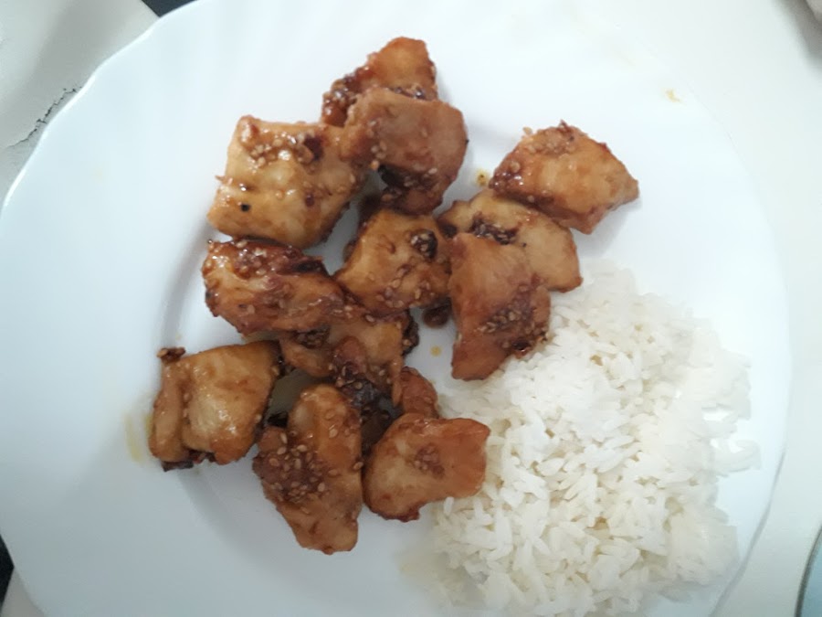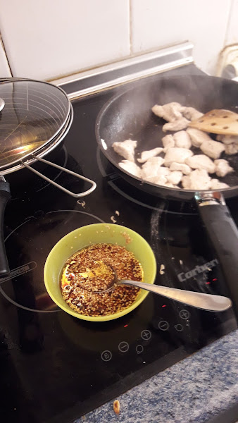 Pollo cortado en trocitos (yo puse el suficiente para dos personas)