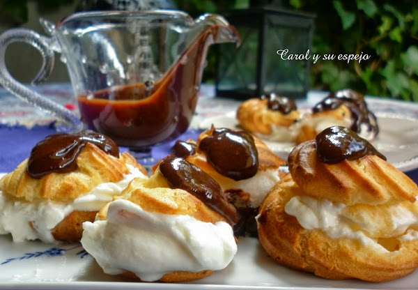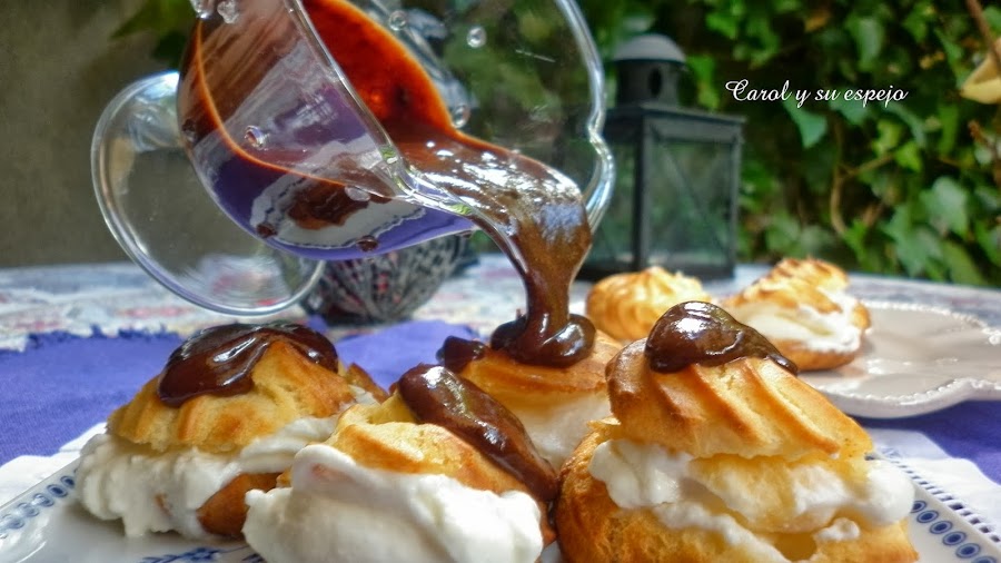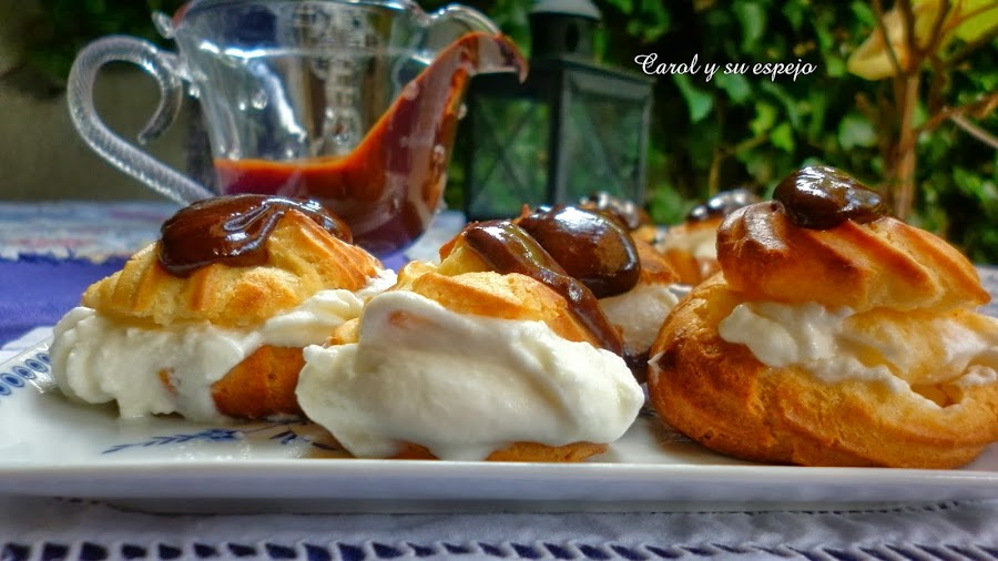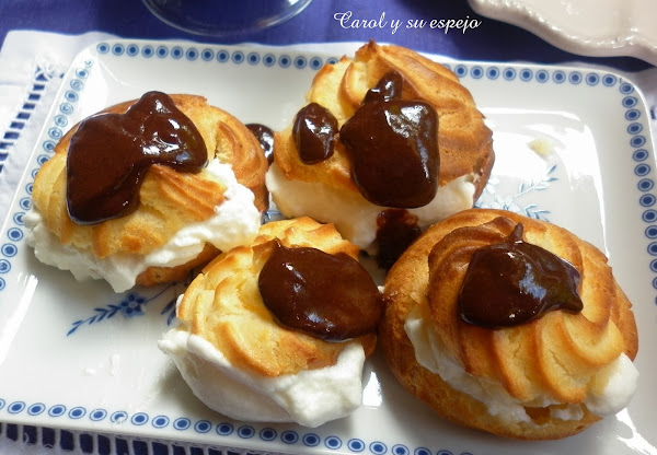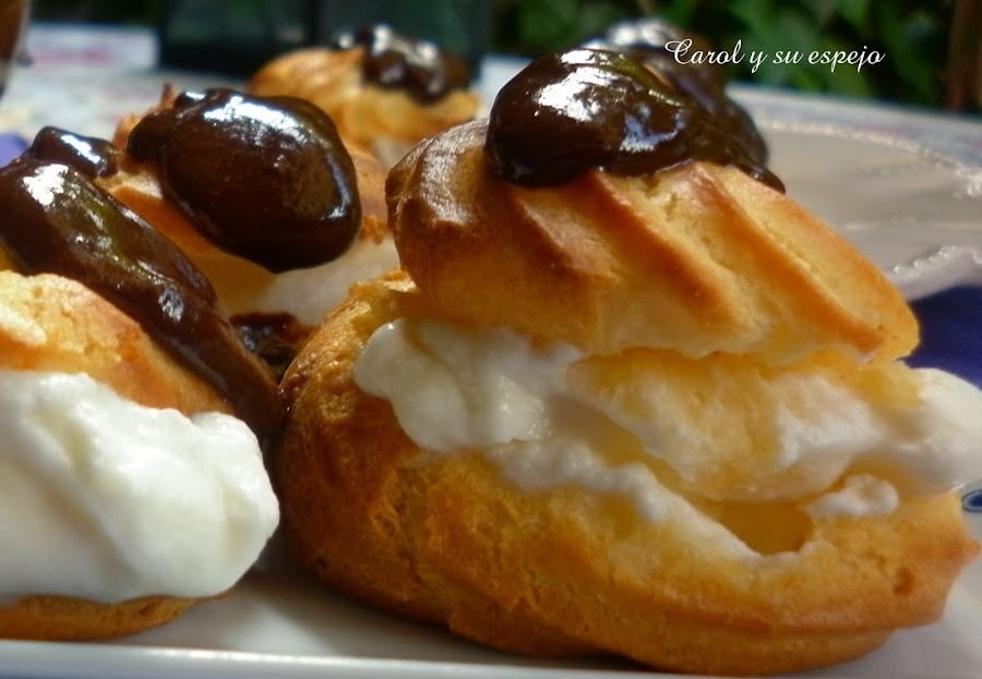Otro de los postres del libro de Amanda Laporte. Estos profiteroles llevo viéndolos hace tiempo, les tenía muchas ganas pero me parecía que no me iban a salir bien, no se, era una percepción pero... ni mucho menos!!!. ,Me han salido genial y además que son muy fáciles de hacer, y lo que más me ha sorprendido es lo rápido que se hacen y el buen resultado que dan, están riquísimos. Así que animaros!!!!