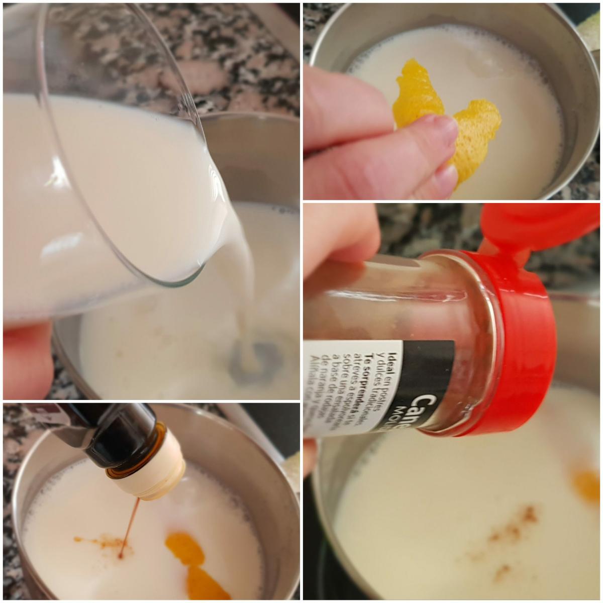 Tiempo necesario: 30 minutos.Infusionar la leche: En un cazo a calentar a fuego medio ponemos, la leche, la corteza de limón, una cucharadita de canela y 3 cucharaditas de azúcar. Una vez comience a hervir, retiramos del fuego y dejamos reposar mientras preparamos el resto de la receta.