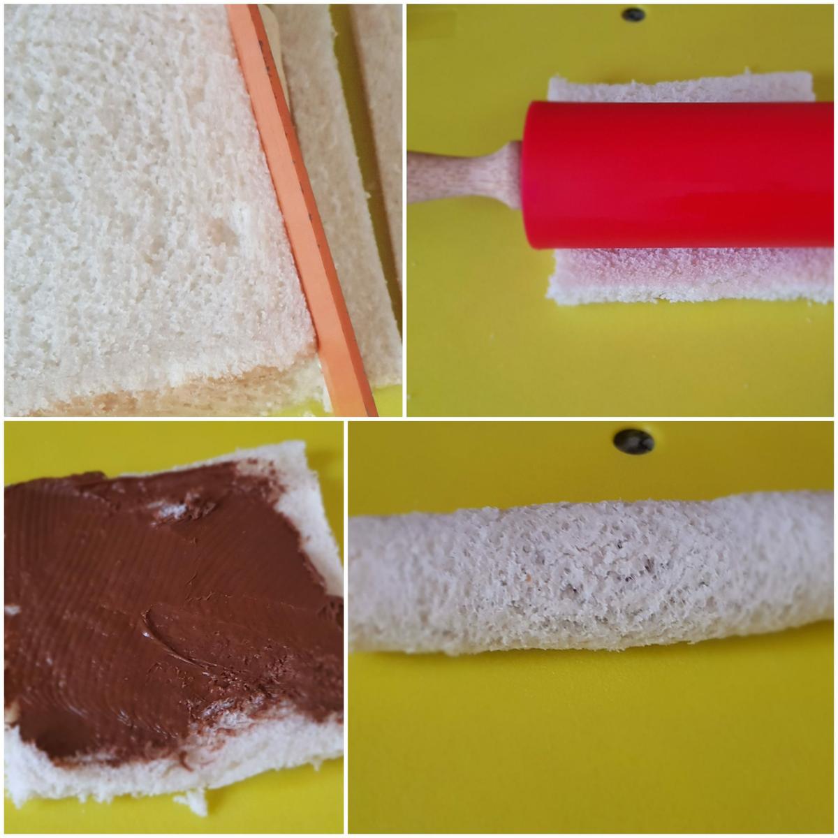 Seguidamente untamos la rebanada con Nocilla y enrollamos.