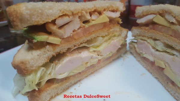 Vamos con el sándwich, cojeamos una primera rebanada de pan y añadimos salsa al gusto de cada uno, ponemos un tranchete de #queso, una rebanada de tomate y dos o tres trozos fileteados de #aguacate un trozo de pechuga de pollo y una hoja de lechuga, cerramos con la otra rebanada de pan y volvemos a repetir el mismo proceso en el siguiente piso.