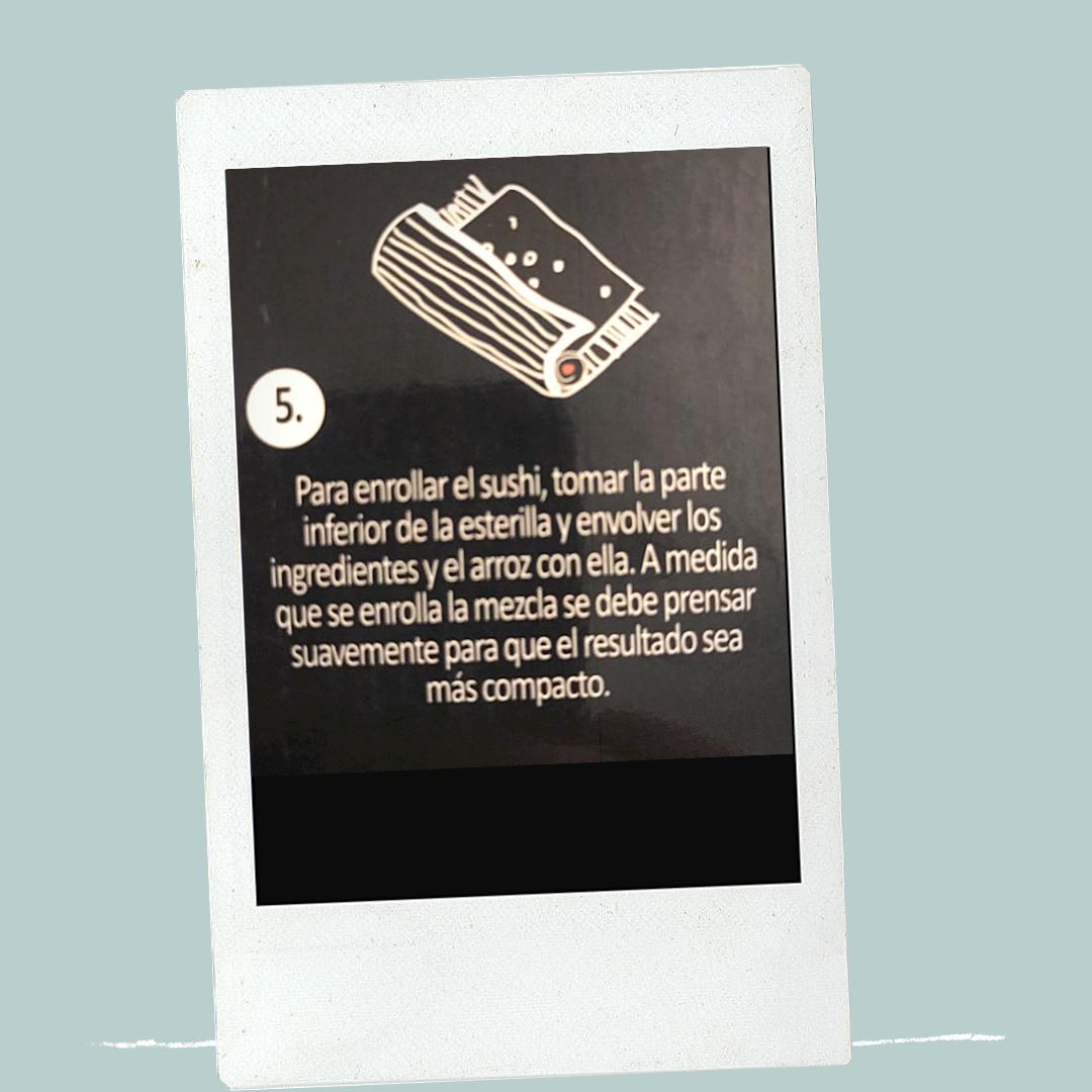 Para enrollar el sushi, tomar la parte inferior de la esterilla y envolver los ingredientes y el arroz con ella. A medida que se enrolla la mezcla se debe prensar suavemente para que resultado sea más compacto.
