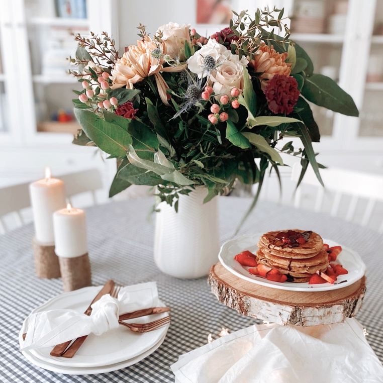 * Sino te gusta el plátano puedes sustituirlo por compota de manzana, yo normalmente la corto y la dejo en el microondas unos minutos. Espero que os guste y si os animáis me contáis que tal. En casa nos hemos vuelto adictos y es nuestro desayuno de fin de semana.