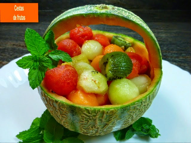 Y como postre esta vistosa y original cesta con frutas que nos trae Josean desde su blog "Mi Horno de Leña". Imprescindibles las saludables frutas en una alimentación equilibrada, y si las ofreces de esta manera, seguro que te hacen la ola.