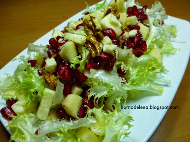 Ensalada de escarola y granada. Deliciosa ensalada de temporada la que te traemos hoy. Esta receta te sirve incluso para un día de fiesta. Te aseguro que tus invitados no quedarán indiferentes a esta mezcla de escarola, fruta fresca y frutos secos.