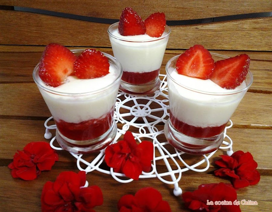 Vasitos de chocolate blanco y fresas