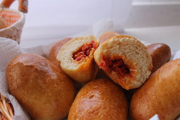 Tapitas y postres es mi blog y en él vas a encontrar estos bollos preñaos, preñaos de chorizo claro. Un aperitivo genial que prepararemos diluyendo levadura fresca en un poco de leche tibia. Luego añadiremos un huevo, sal, mantequilla y harina de fuerza, Todo bien amasado y dejamos reposar antes de dar forma a los bollos a los que meteremos dentro unos taquitos de chorizo o una rodaja gruesa. Cuando lo hornees, el olor impregnara toda la cocina, Será difícil resistirse. Tienes que pasarte por mi página para ver un estupendo paso a paso.