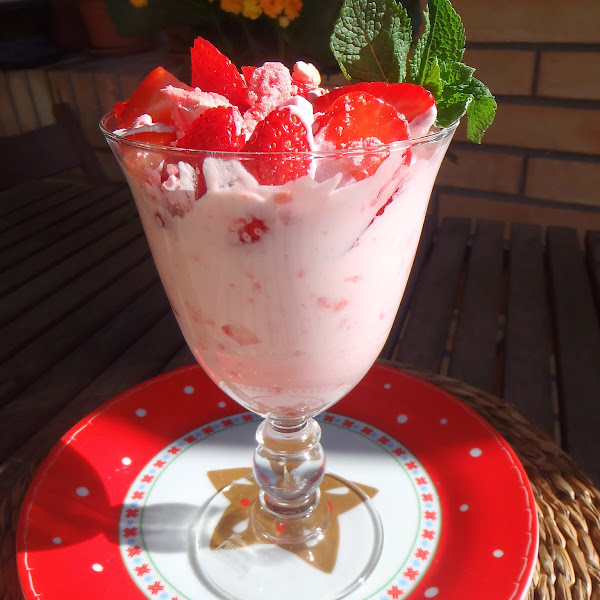Fresas con nata (crema de leche) merengada (Eton Mess)