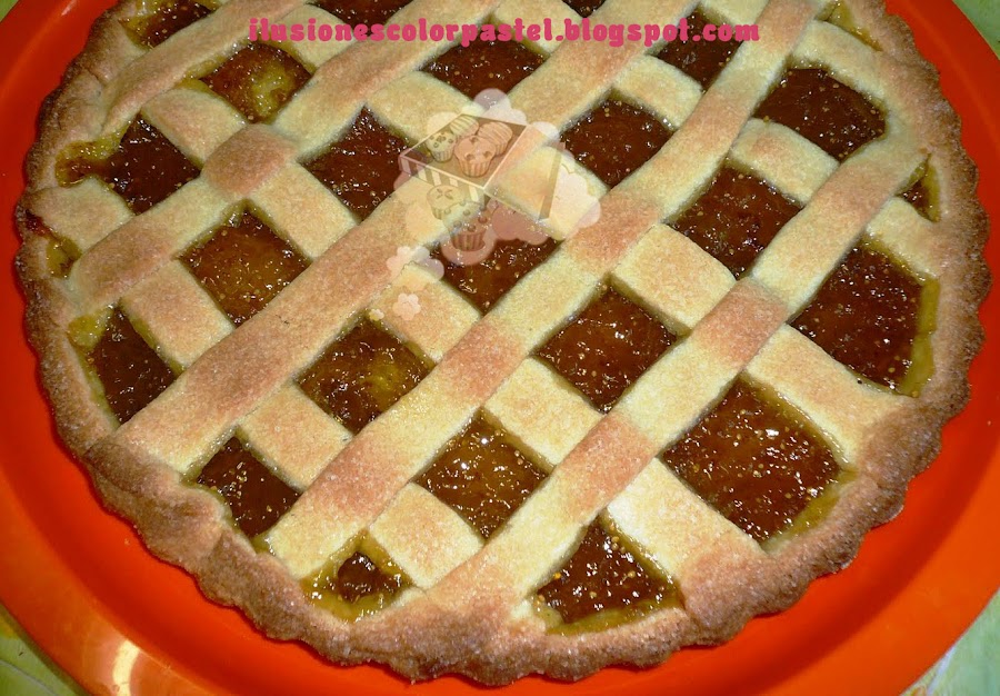 Dedicado a mi tía Marisa que tenía muchas ganas de ver un pastel así, tipo tartaleta con frutas, espero que este sólo con mermelada le guste!!