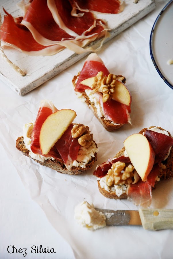 Nada más sencillo y a la vez delicioso que unas tostás para presentar como aperitivo o en cualquier cena con amigos ( fuente- Chez Silvia )