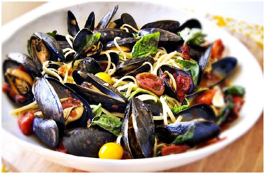 Espaguetis marineros con mejillones