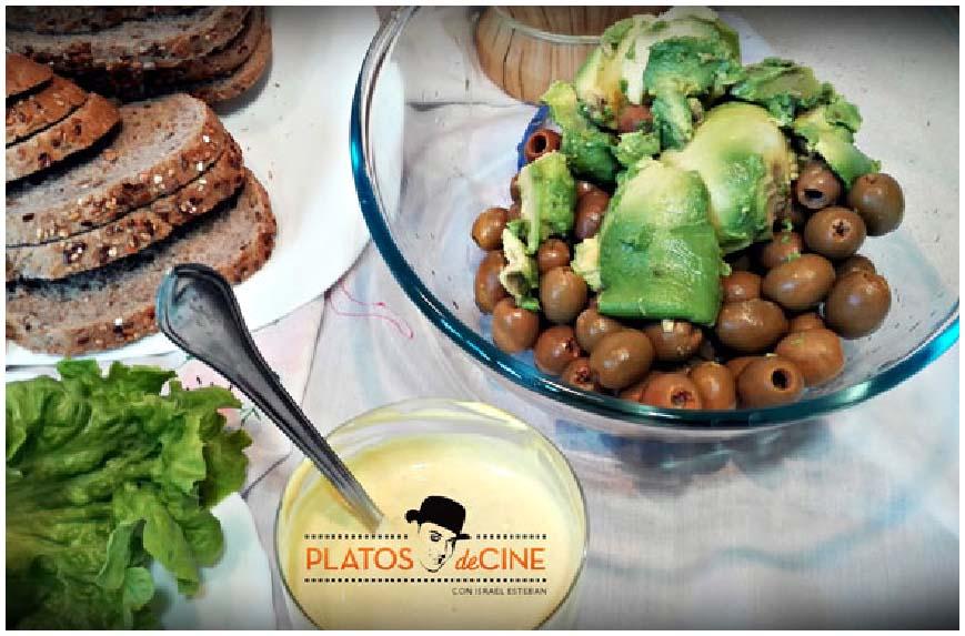 Aperitivo de paté de aceituna con aguacate y mostaza