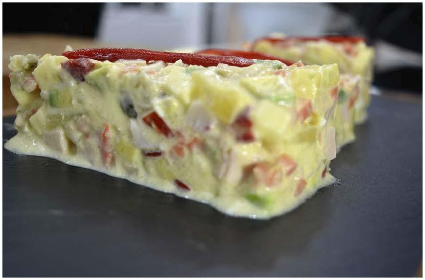 A esta ensaladilla rusa se le han rebajado un poco las calorías para hacerla perfecta para dietas de adelgazamiento.