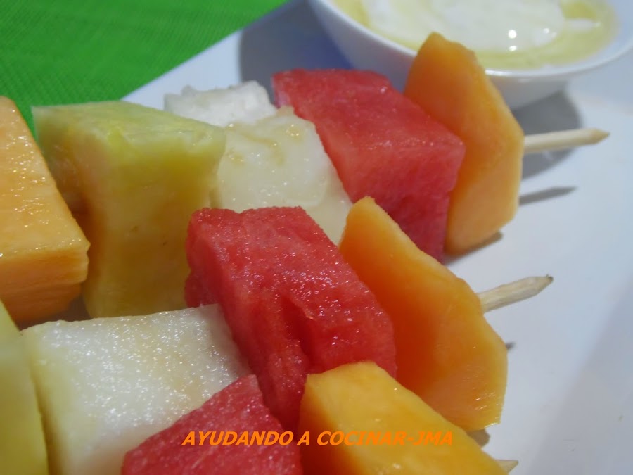 Además de todas la recetas indicadas con anterioridad, comentar que igualmente podemos preparar unas brochetas de frutas de temporada, como naranja, kiwi y platano. (en el enlace tenéis una versión con frutas de verano)
