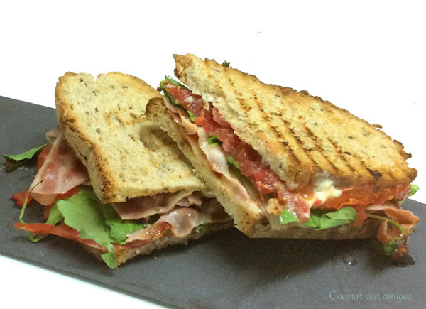 En esta ocasión esta receta nos la ha dejado nuestra amiga Gloria del blog Cocinar con amigos. Los ingredientes que necesitamos para preparar este excelente sandwich son los siguientes: pan de molde, bacon, queso, tomate, rúcula, mayonesa, ajo y mostaza. Como siempre recuerda que puedes ver la receta original, con todas las indicaciones para hacerla, haciendo clic sobre el título de la receta.