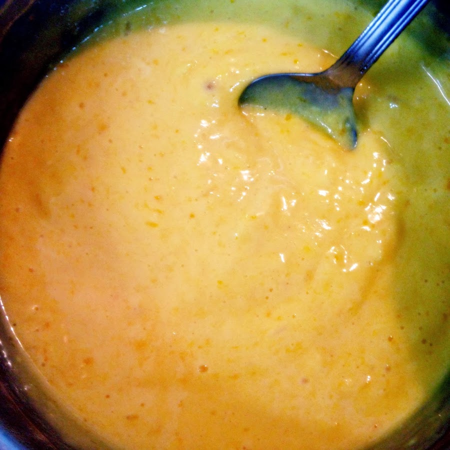 Pon a calentar en un cazo el resto del zumo con la ralladura. Para evitar que salgan grumos, cuando el zumo empiece a hervir vierte un poco a la mezcla anterior y remueve bien. Pasa todo al cazo. Pon al fuego y cocina hasta que espese.