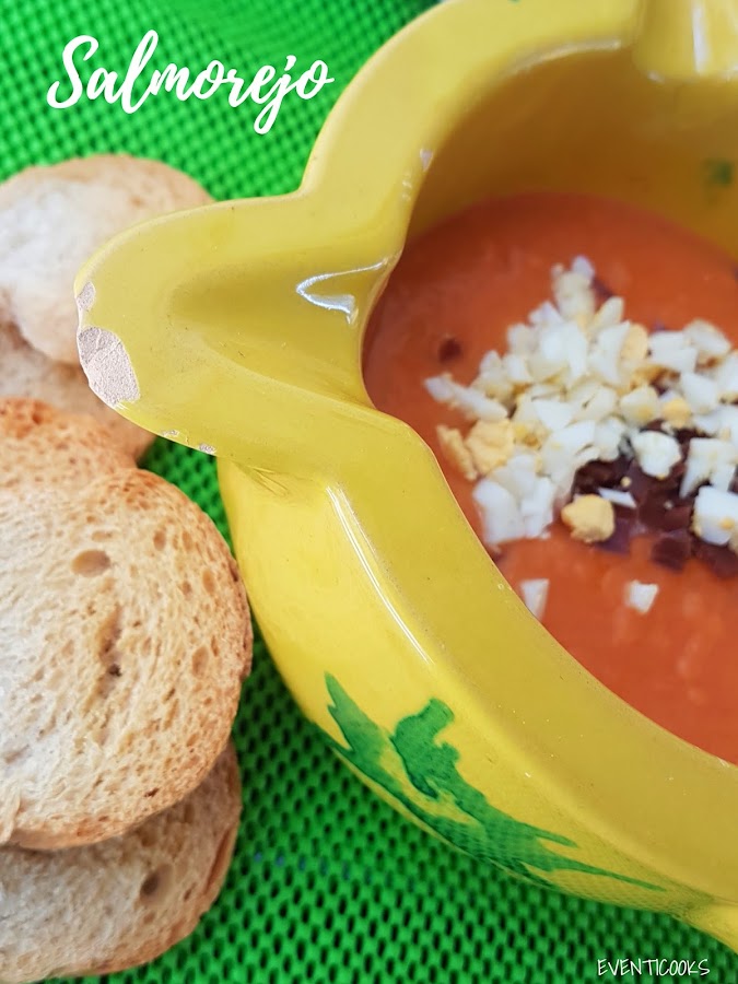 Hacemos ahora parada en Córdoba y os servimos este salmorejo de a mano de Eventicooks. "Se trata de uno de esos platos que quizás esta especialmente indicado para el verano pero que a nosotros siempre nos viene bien aunque llueva, haga sol, frío o mucha calor. Quién puede resistirse a un buen salmorejo cordobés... Nosotros no. Por eso queremos compartir con todos vosotros nuestra receta."