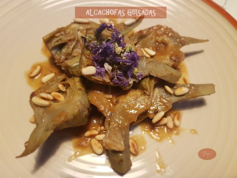 Desde Fresa y canela han preparado unas alcachofas guisadas: "En mi último viaje a Cádiz me vine sin poder tomar alcachofas, los dos intentos que hice resultaron infructuosos, cuando llegábamos se habían terminado ya, así que aquí va mi homenaje para desquitarme"