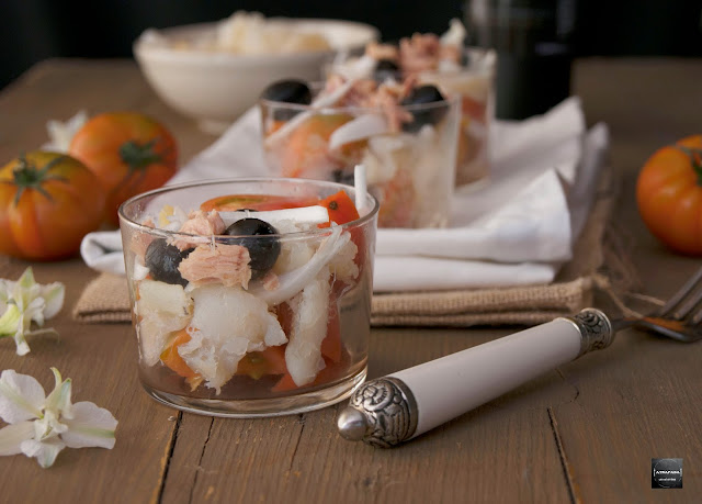 4. Esqueixada: una receta típica de la cocina catalana, una ensalada de tomate, bacalao, cebolla y atún.