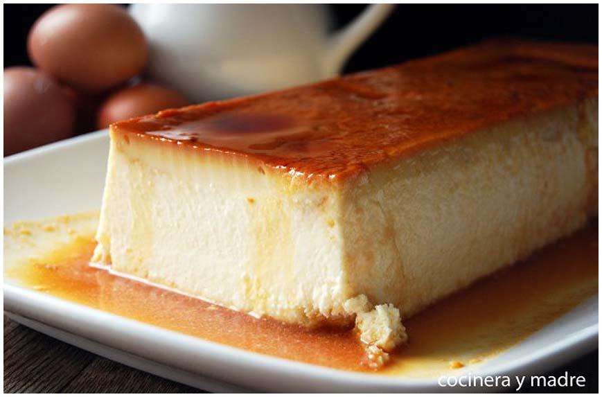 Flan de queso, el tradicional de huevo pero aderezado con queso, dando como resultado un flan con un sabor un poco más intenso. Y ni que hablar de sus propiedades nutricionales, ya que su aporte de queso lo hace rico en calcio.