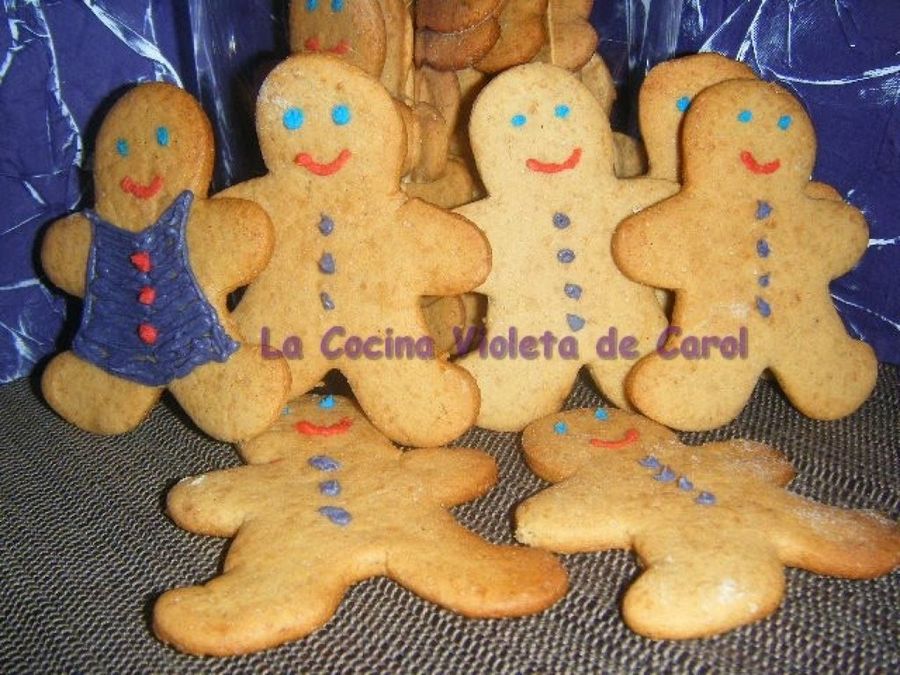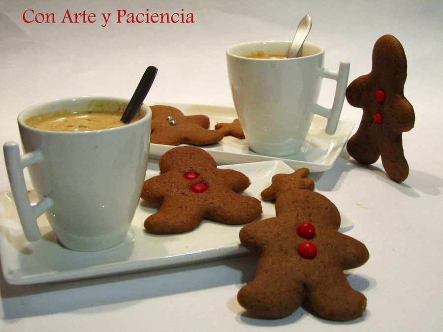 Desde los países anglosajones nos llega la tradición de las galletas de jengibre denominadas Gingerbread Man Cookies. Tienen una forma muy característica, de hombrecillo, al que podemos decorar al gusto. En el blog Con Arte y Paciencia, les añaden unos botones de color rojo.Y en el blog de La Cocina Violeta de Carol, estos hombres de jengibre tienen ojos y sonrisa e, incluso, una camiseta elaborada con chocolate teñido.