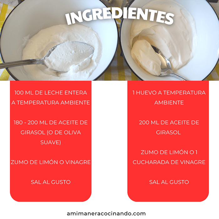 LACTONESA y mayonesa, son dos salsas imprescindibles para acompañar a tus ensaladas y entrantes. Aunque, sin duda, la más conocida y preparada es la mayonesa, la lactonesa es también una opción estupenda, sobre todo en verano, puesto que no lleva huevo. Te explico las recetas de ambas salsas: