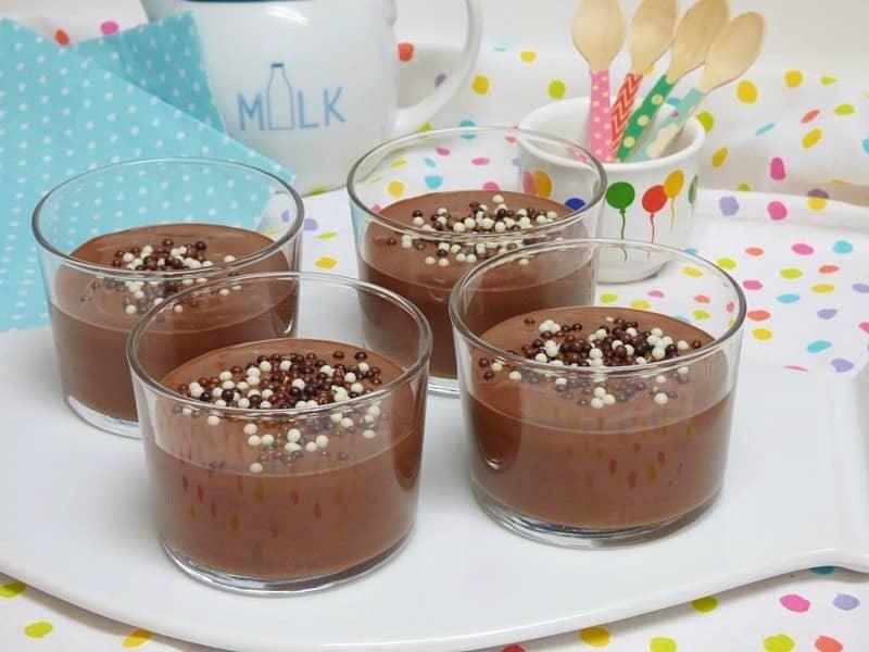 Volvemos a los postres individuales y que se presentan en vasitos, aquí te muestro dos opciones que quedan estupendas y no pueden ser más fáciles de hacer. Con solo 3 ingredientes se prepara esta gelatina de naranja natural de Olor a hierbabuena. Es un postre que tendrás listo en pocos minutos, de forma muy fácil y que, como puedes ver en la foto, queda de 10. Y si en casa sois chocolateros, no puedes dejar de preparar este postre de chocolate de Mis cosillas de cocina que, además, se elabora sin gluten y, por supuesto, sin colorantes ni conservantes.