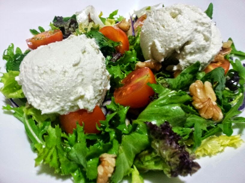 ENSALADA CON HELADO DE QUESO (receta aquí). Esta sorprendente ensalada, combinará muy bien elijas el menú que elijas. Qué original!