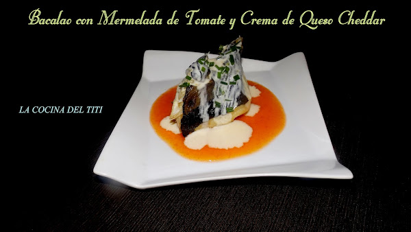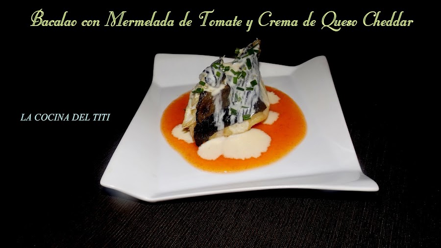 BACALAO CON MERMELADA DE TOMATE Y CREMA DE QUESO CHEDDAR