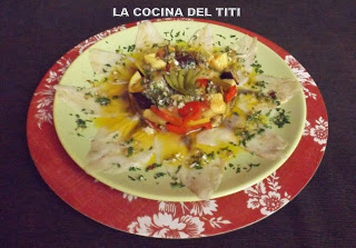 CARPACCIO DE LUBINA CON ESCALIVADA