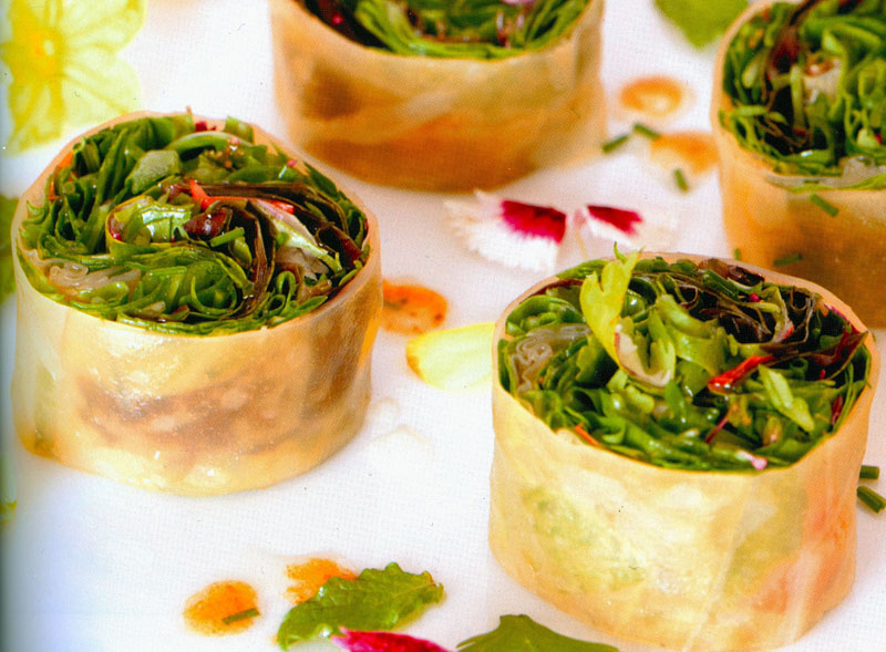 ENSALADA DE CRUDOS SOBRE TALLOS DE ACELGA