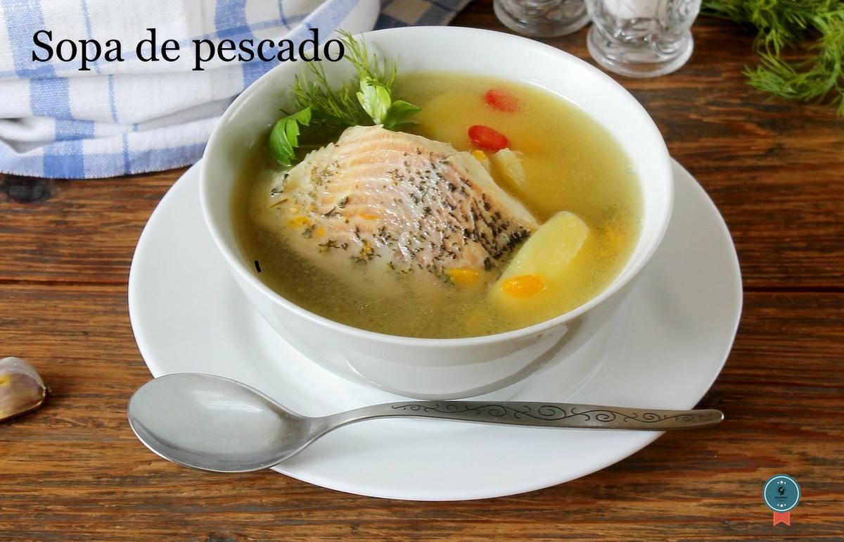 Breve explicación de la receta de Sopa de Pescado: Limpiamos y cortamos todas nuestras verduras y las pochamos en una olla junto con Aceite de Oliva. Una vez tome color ( si disponemos de unas cabezas de langostinos, se la añadiríamos y flambearíamos con un chorro de brandy) agregaremos las espinas del pescado y los 2 litros de Agua. Coceremos a fuego fuerte durante 1 hora y media. Posteriormente, retiramos las espinas y la patata y trituramos el Caldo. Una vez triturado, lo pasamos por un colador fino ( IMPORTANTE: dejar caer solo el caldo). Levantaremos la sopa y introducimos la carne de merluza junto con la Patata. Para acabar, cuando la merluza esté lista ( unos 5 minutos aproximadamente), servimos y tendríamos lista nuestra receta de aprovechamiento.
