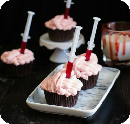 Esta receta me encanta y llevo tiempo queriendo hacerla, pero es que el toque de la jeringuilla con el sirope de fresa me ha dejado muerta! Super halloweenera