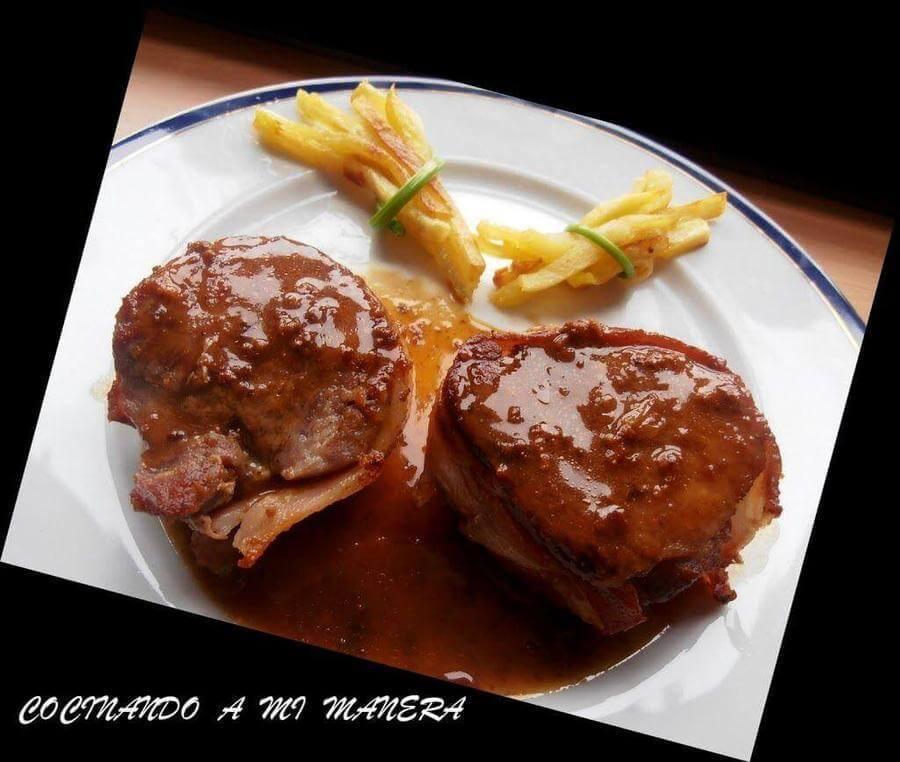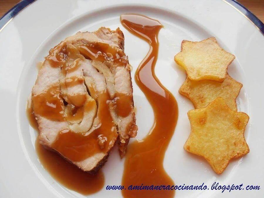 LOMO RELLENO DE CEBOLLA CARAMELIZADA Y MANZANA CON REDUCCIÓN DE PEDRO...