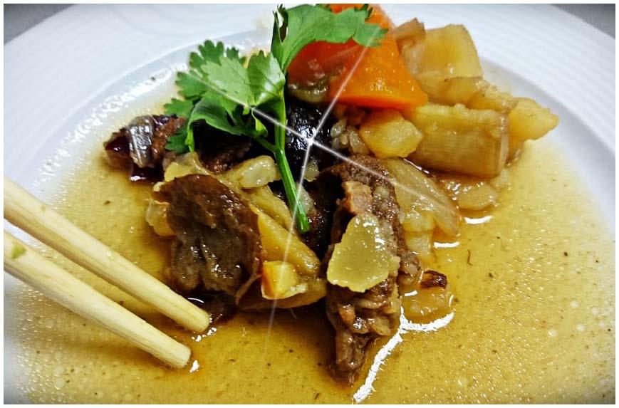 Vamos a aprender a hacer un guiso tradicional de ternera con patatas, dátiles y muchos ingredientes más que le darán un sabor interesante. Ingredientes como el jengibre o los anises estrellados.